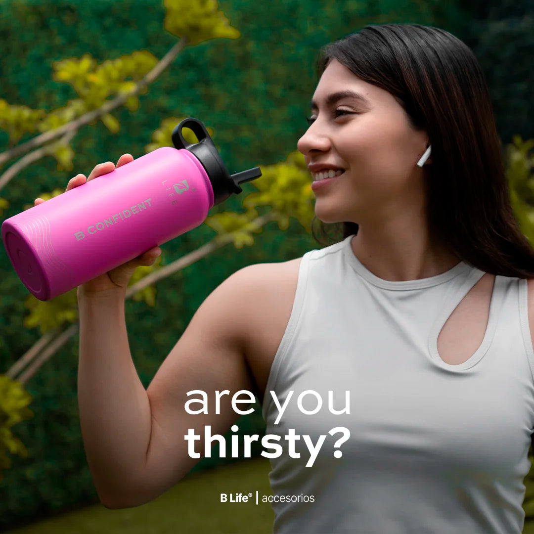 ¡Botella térmica B Confident B Life®, para un estilo de vida activo! Nuestro termo de acero inoxidable de 1 L es ideal para bebidas frías y calientes, manteniendo su temperatura por hasta 12 horas.