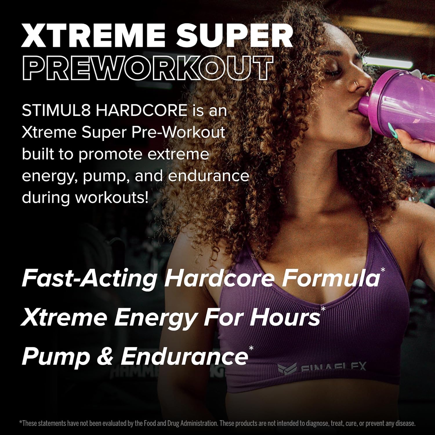 ¡FINAFLEX STIMUL8 HARDCORE es un Xtreme Super Pre-Workout construido para promover la energía, el bombeo y la resistencia extremos durante los entrenamientos! La fórmula única de STIMUL8 HARDCORE está potenciada por una mezcla exótica de energía e ingredientes que mejoran el rendimiento diseñado para brindar los resultados que necesitas para superar incluso las actividades más difíciles.*