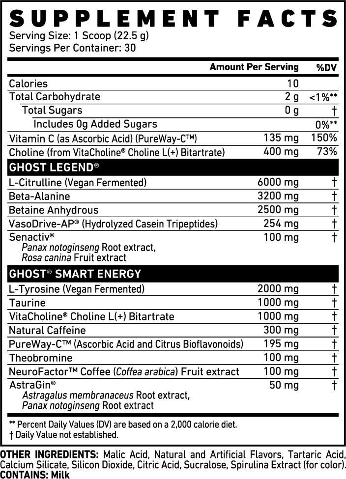 Siéntete como una leyenda cuando más lo necesitas. El pre-entrenamiento GHOST LEGEND combina una fórmula destacada de energía y concentración con ingredientes de primera calidad para que te sientas como una leyenda cuando más lo necesites*.®