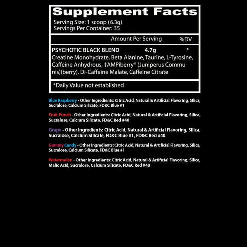 - FUERZA PSICÓTICA - ¡Psychotic BLACK presenta una fórmula única, desarrollada para aumentar la fuerza y desarrollar músculo magro por el que se conoce el nombre Psychotic!