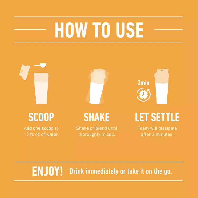 Instrucciones: Agite (no revuelva) 1 cucharada de proteína baja en carbohidratos clara ISOPURE en 14-18 onzas líquidas de agua fría (con o sin hielo). Después de agitar, espere aproximadamente un minuto para que se asiente la espuma natural.