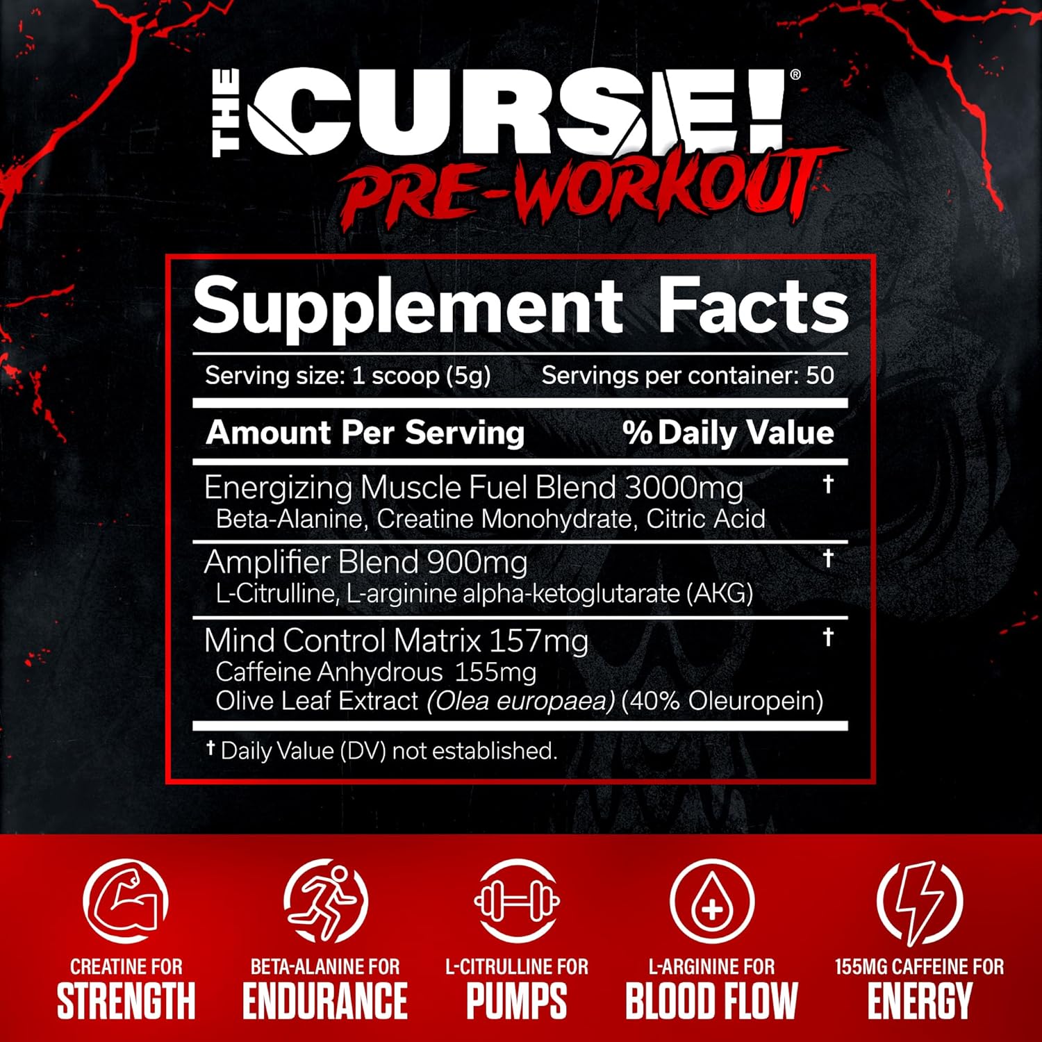 Concéntrate, mantente concentrado y experimenta una energía contundente con 155 mg de cafeína por cucharada. Formulado para volver a poner el control en tus manos, The Curse! Le permite ajustar su dosis para adaptarla a su tolerancia.