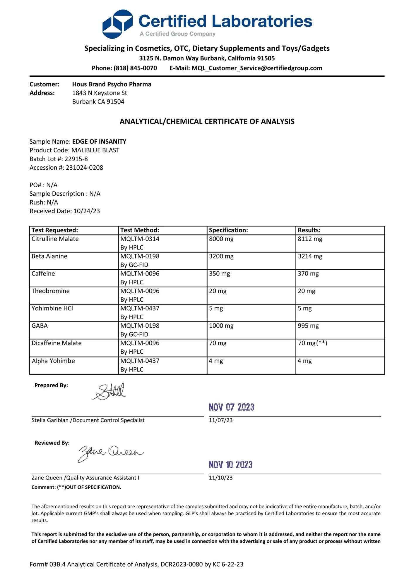 Psycho Pharma Edge Of Insanity 25 Servicios