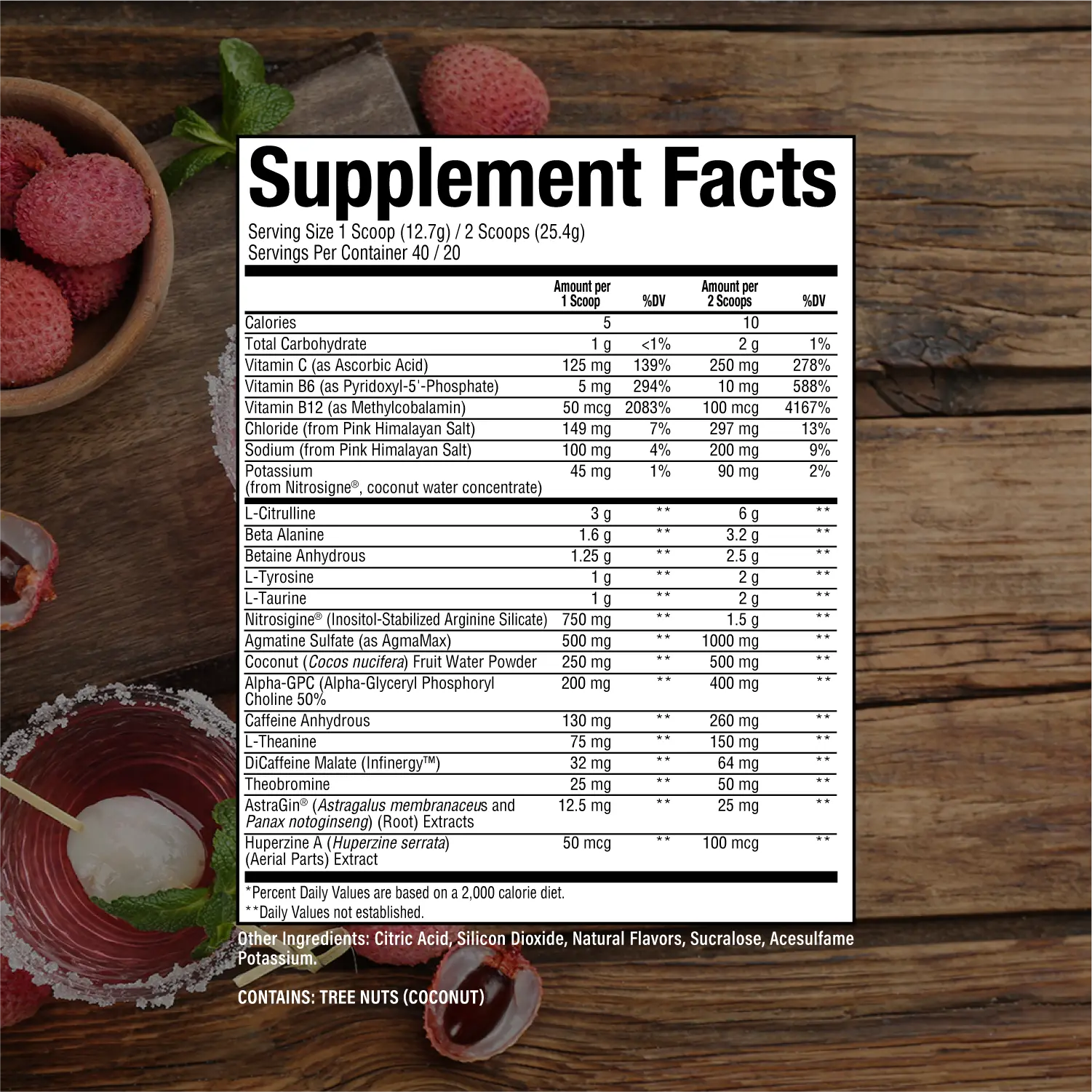 - Ingredientes como la L-citrulina y la beta alanina mejoran la fuerza y la resistencia para obtener el máximo rendimiento.